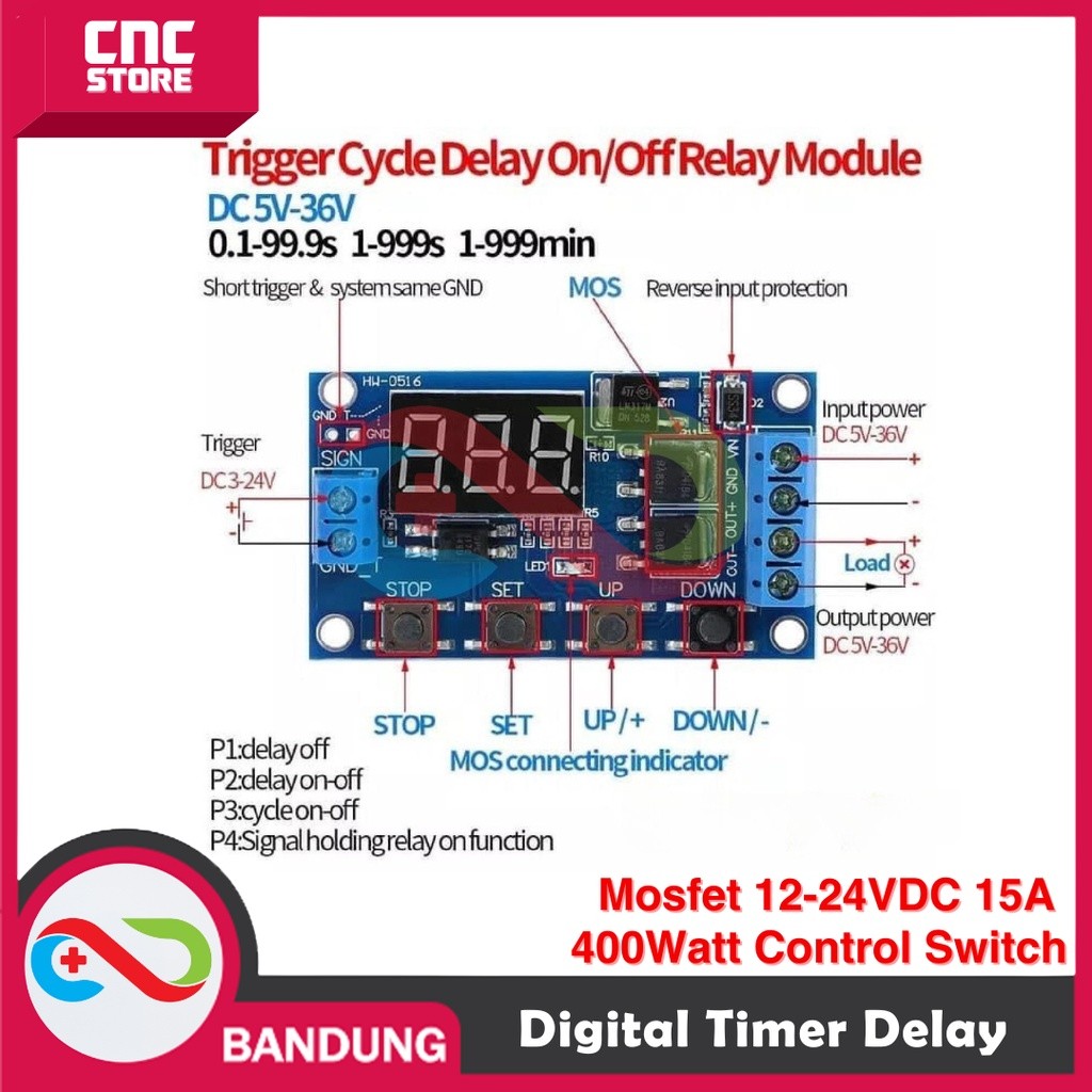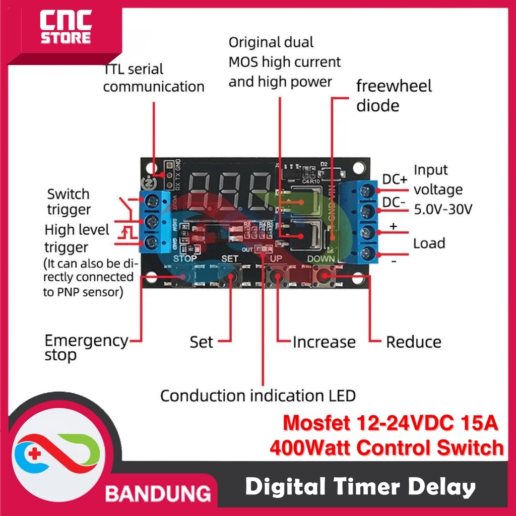 DIGITAL TIMER DELAY ON OFF MOSFET 12-24V DC 15A 400WATT CONTROL SWITCH
