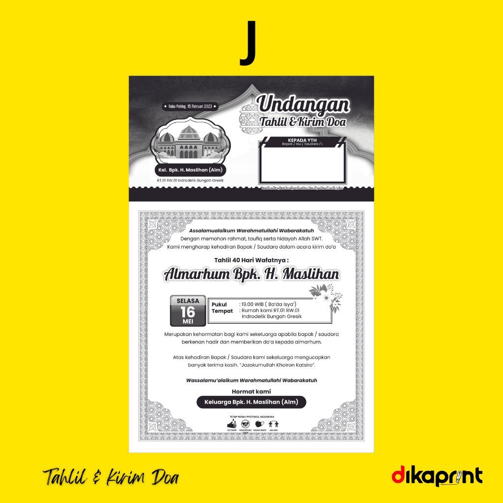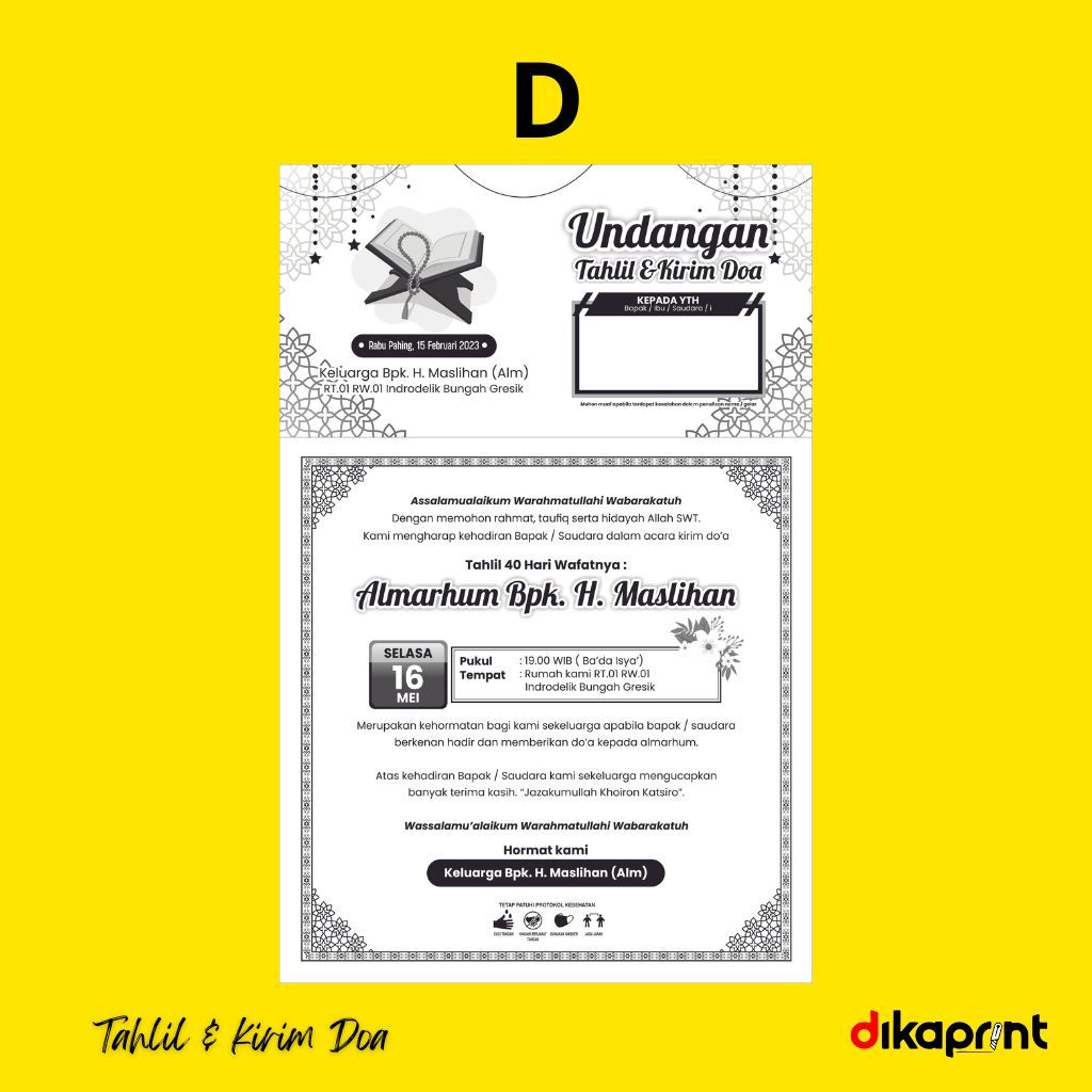 DIKAPRINT Undangan Tahlil Kirim Doa F4