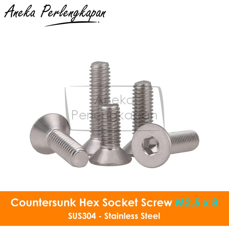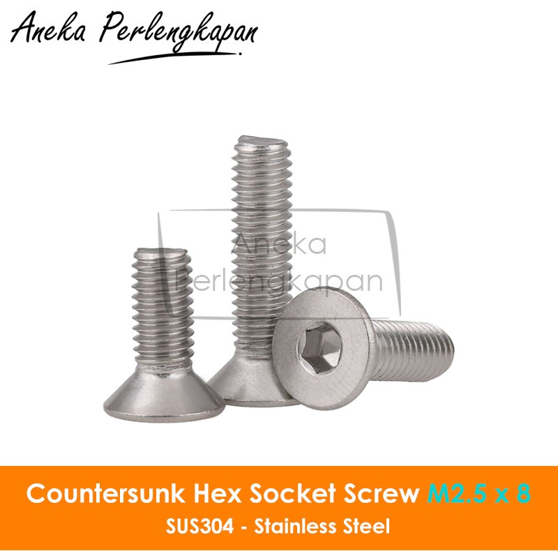 DIN7991 Hex Countersunk Screw / Baut Flat Hexa Stainless Steel M2.5 x 8 Isi 10pcs