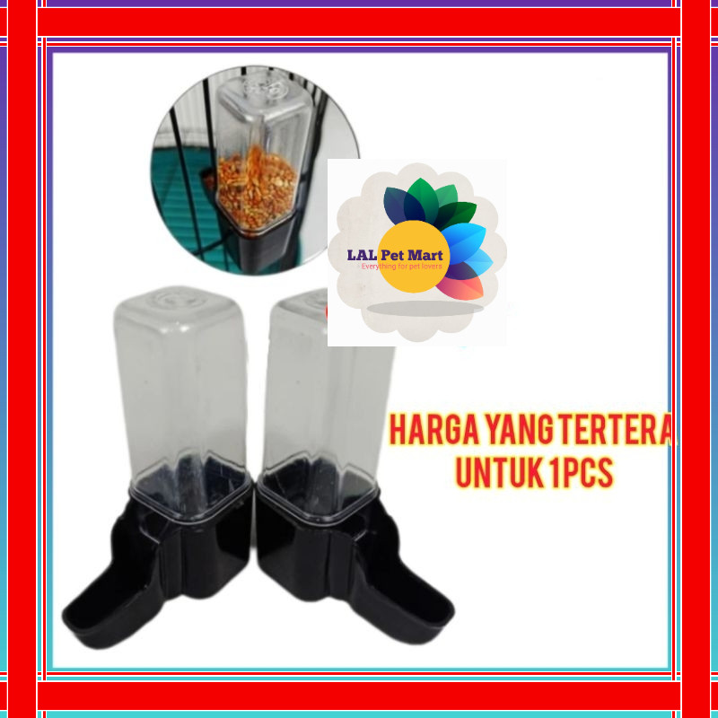 DISPENSER TABUNG HITAM KECIL CEPUK WADAH TEMPAT MAKAN MINUM BURUNG
