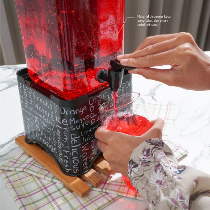 DISPENSER UNIK AIR MINUM SIRUP JUS TRANSPARAN WARNA HITAM HEREVIN