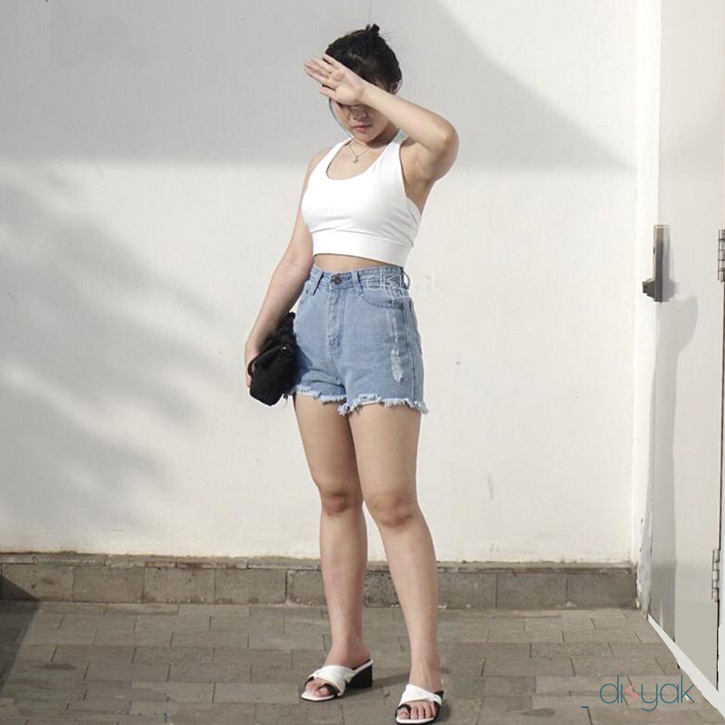 DISYAK - Hotpants Jeans Celana Pendek Wanita Non Stretch Ripped 1032-2032 Light Blue