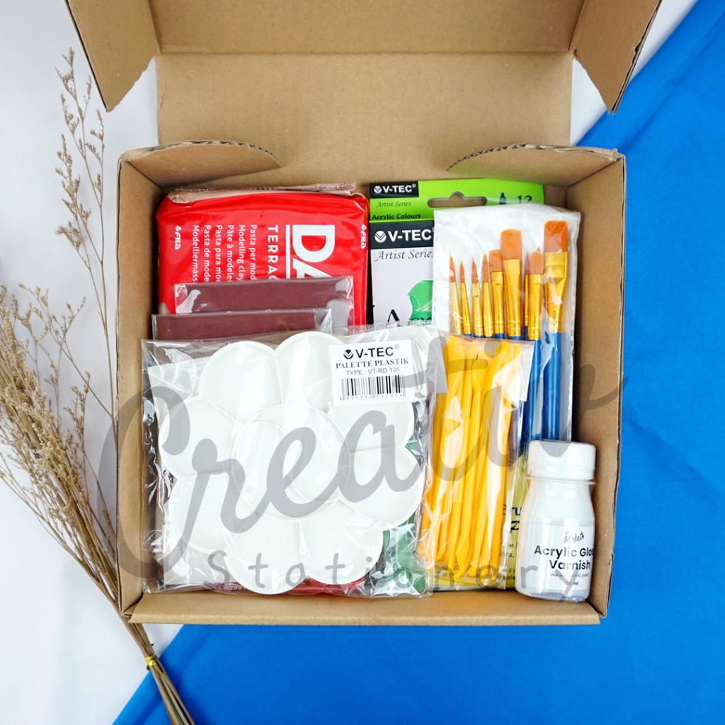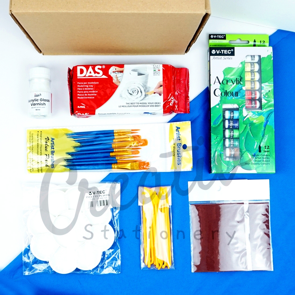 Diy Clay Kit Set Lengkap Premium 500 Gr & 1 Kg Kerajinan Tanah Liat Air Dry Kreate.Kit