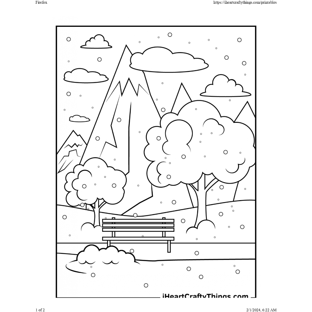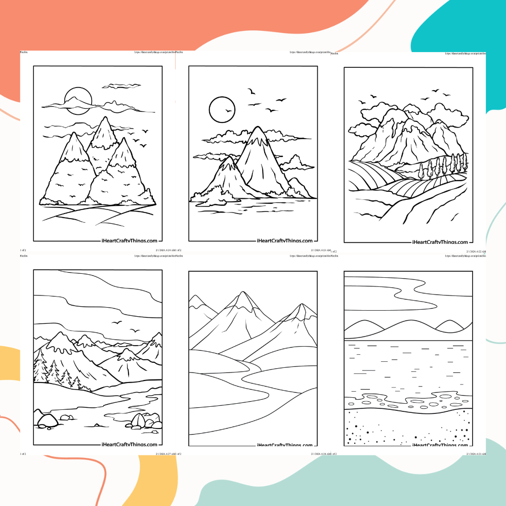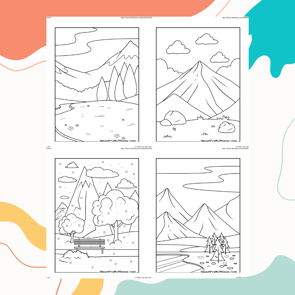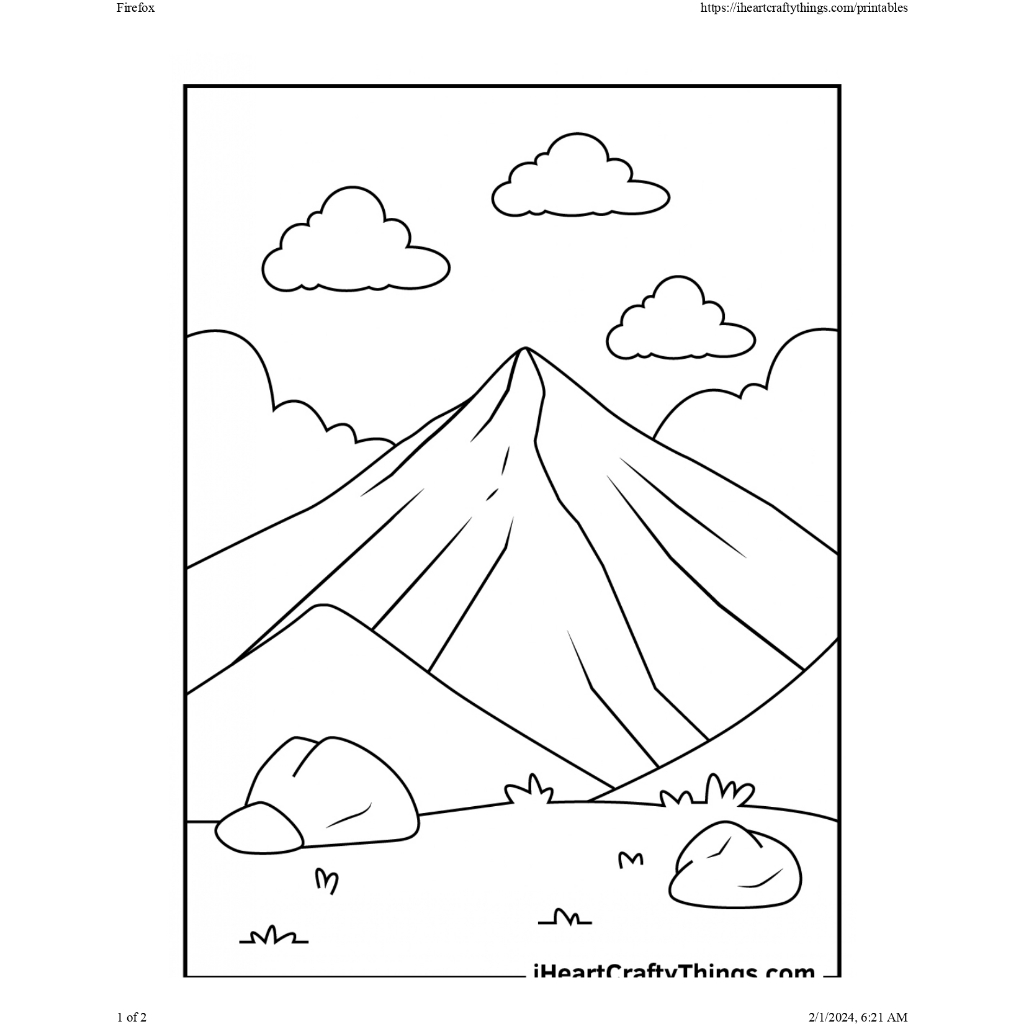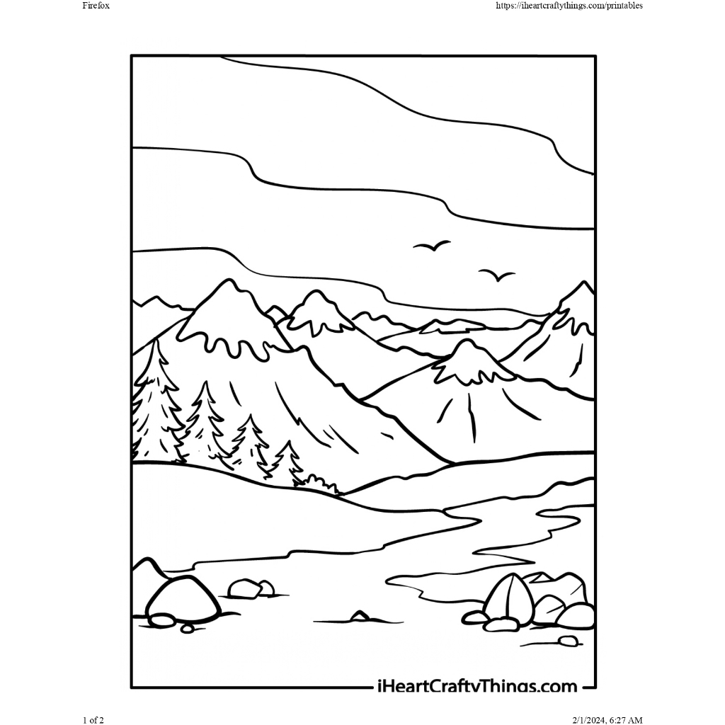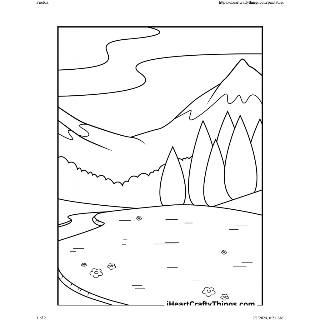 DIY Coloring Page / Lembar Mewarnai Sketsa A4 80 Gsm Tema Pemandangan Pegunungan Sederhana Model Vertikal
