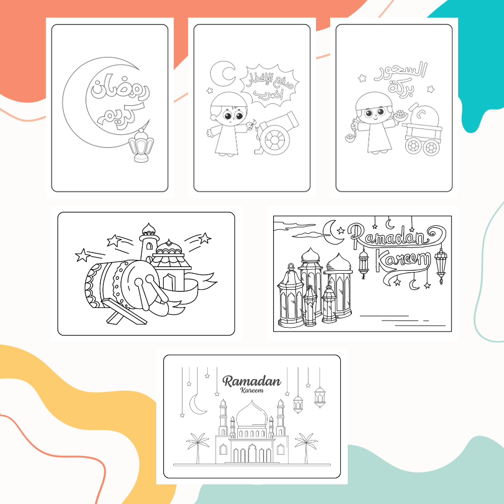 DIY Coloring Page / Lembar Mewarnai Sketsa TEMA RAMADHAN MUSLIM ROMADHON A4 80 Gsm