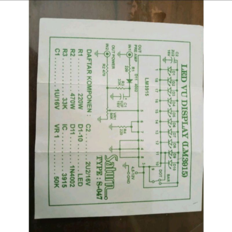 DIY LED VU DISPLAY LM3915 - PCB & Komponen lengkap Belum DISOLDER