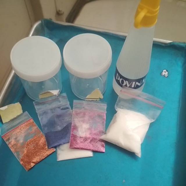 DIY slime kit murah cup 100cc clear glue 75ml slime act metalik powder