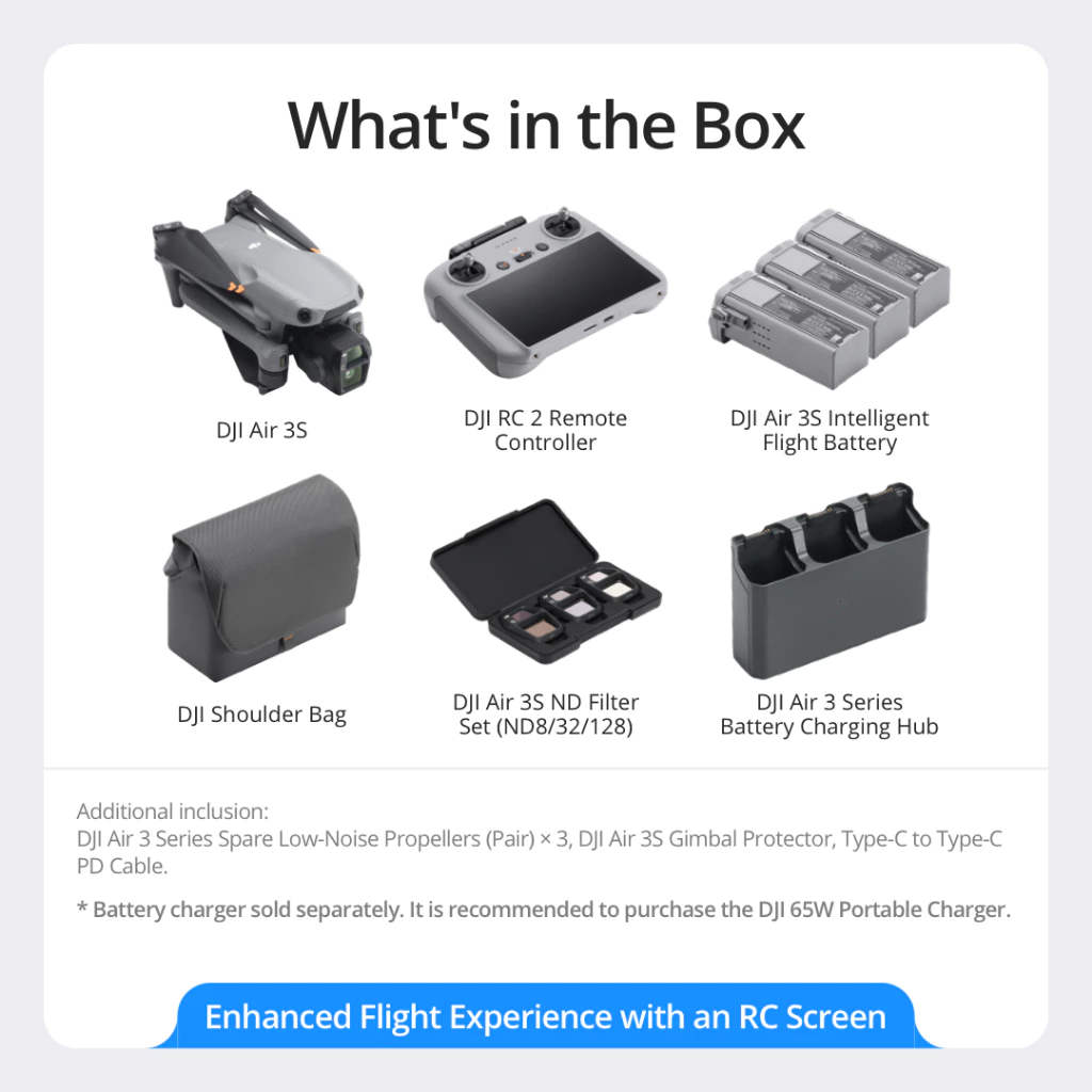 DJI Air 3S Fly More Combo (DJI RC 2) - Camera Drone | 1″ CMOS Primary Camera | Dual-Camera 4K/60fps HDR Video - DJI Banjarmasin