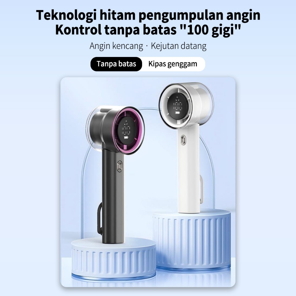 DL Kipas genggam 100 Level Speed Super Kencang Layar LED - Kipas angin kecil Strong High Speed portable rechargeble mini fan