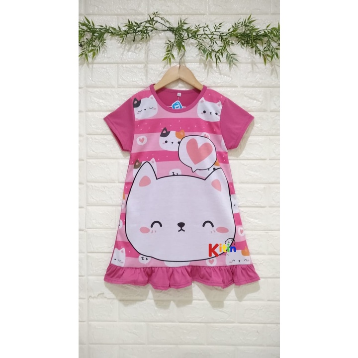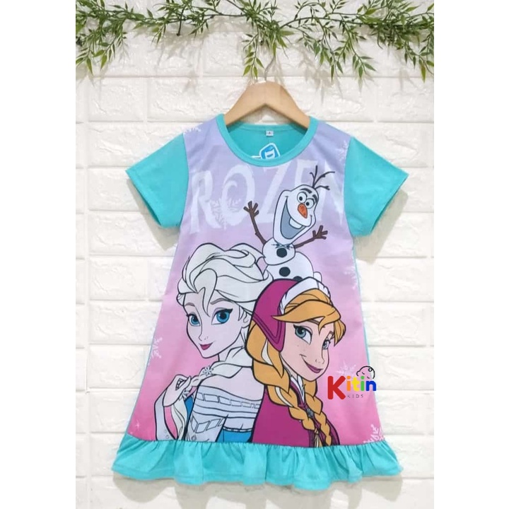 DN - DASTER TERUSAN DRESS ANAK PRINTING DEPAN BELAKANG MOTIF CAT KUCING FROZEN ANNA ELSA BOBA BT21 DORAEMONUKURAN 2-12 TAHUN