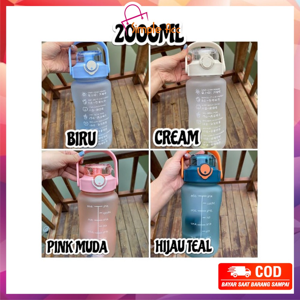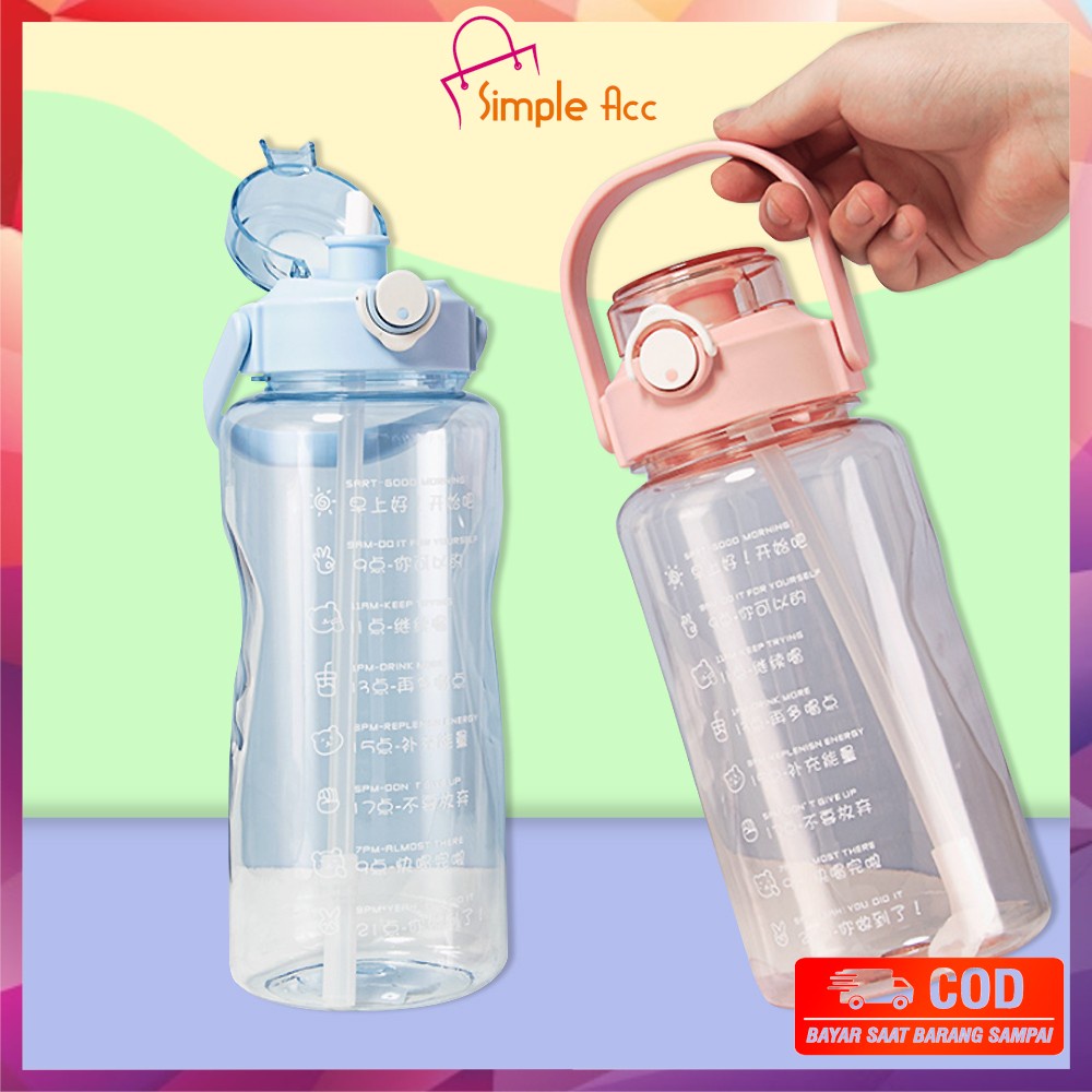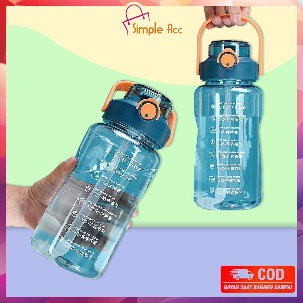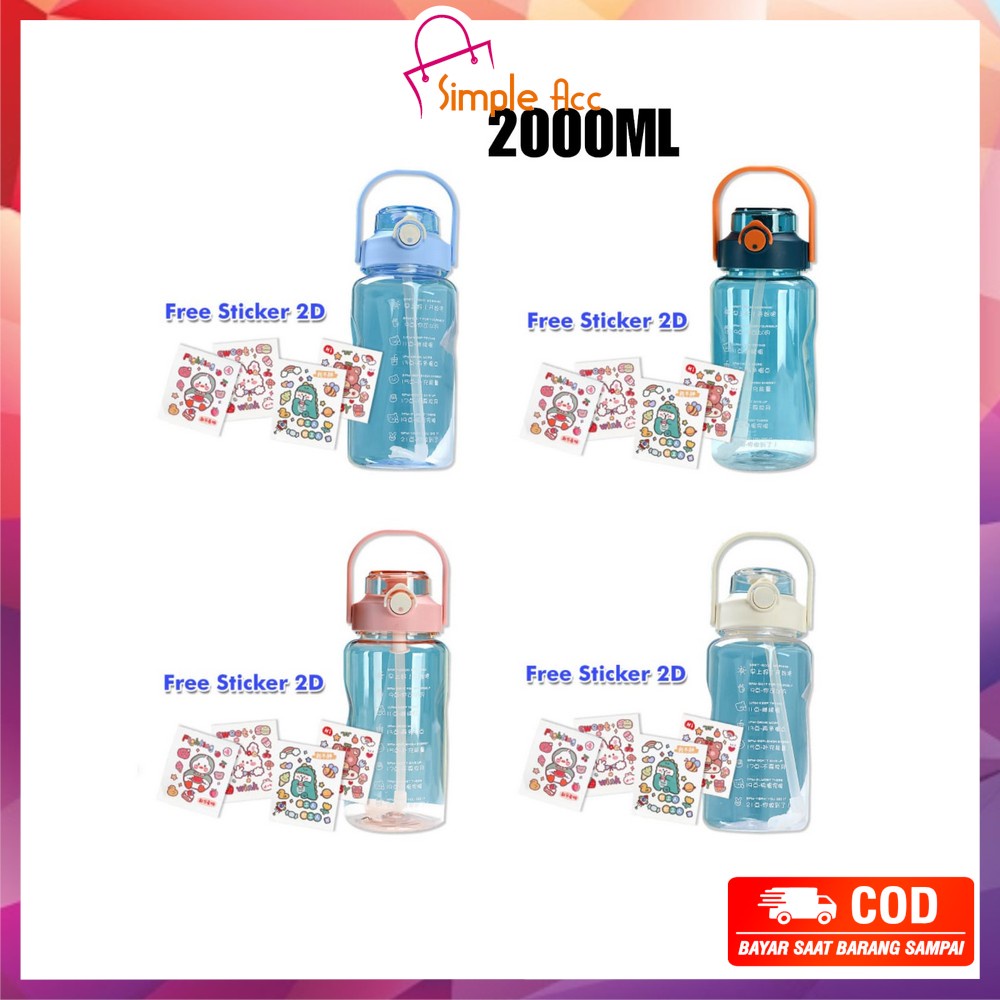 DO-C304 C305 Botol Minum Motivasi 2 Liter Food Grade / Botol Air Minum Jumbo 2000ml BPA FREE / Botol Minum Sedotan Dewasa