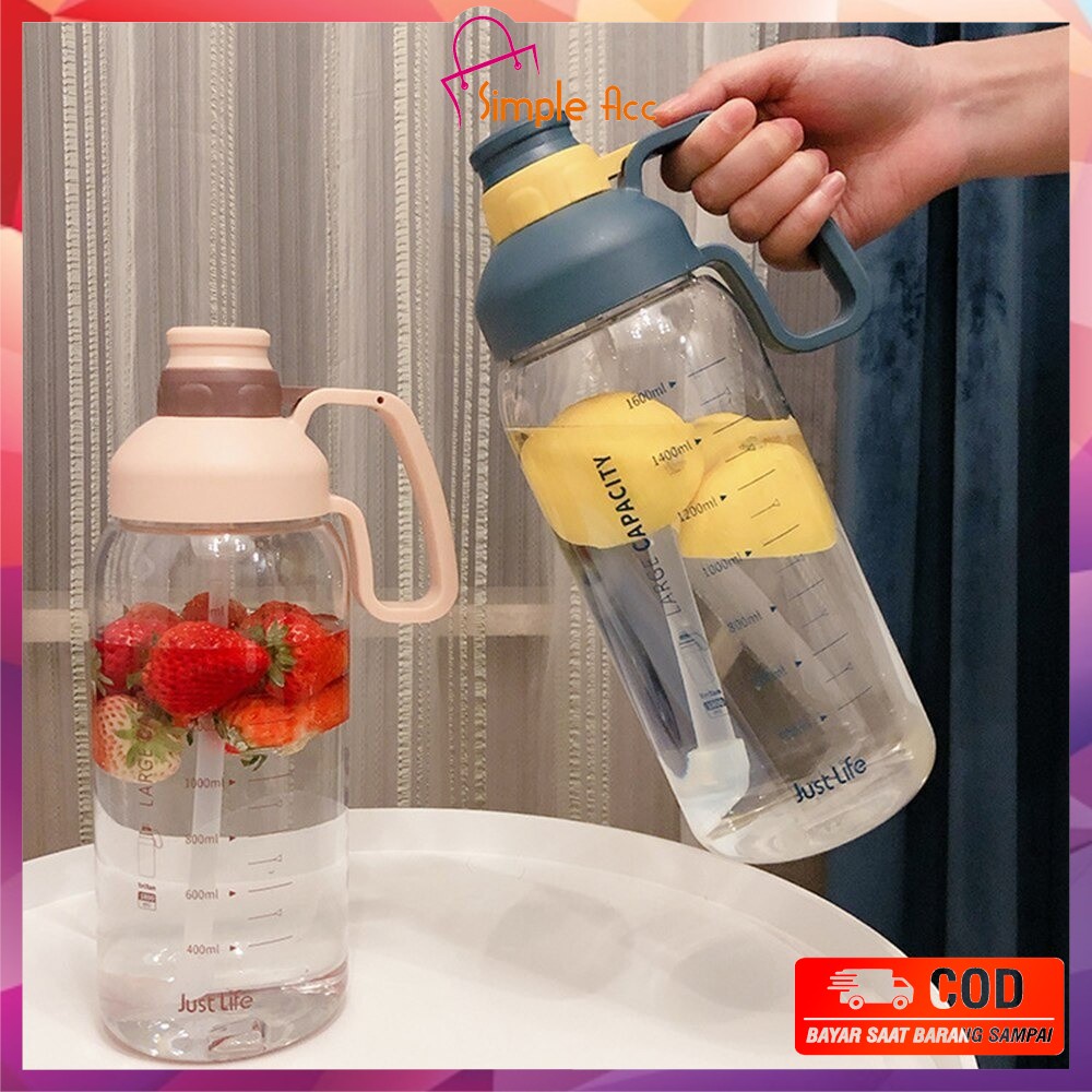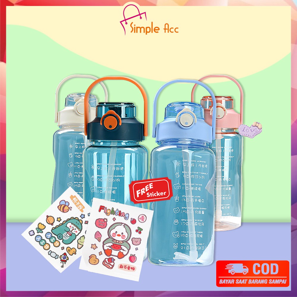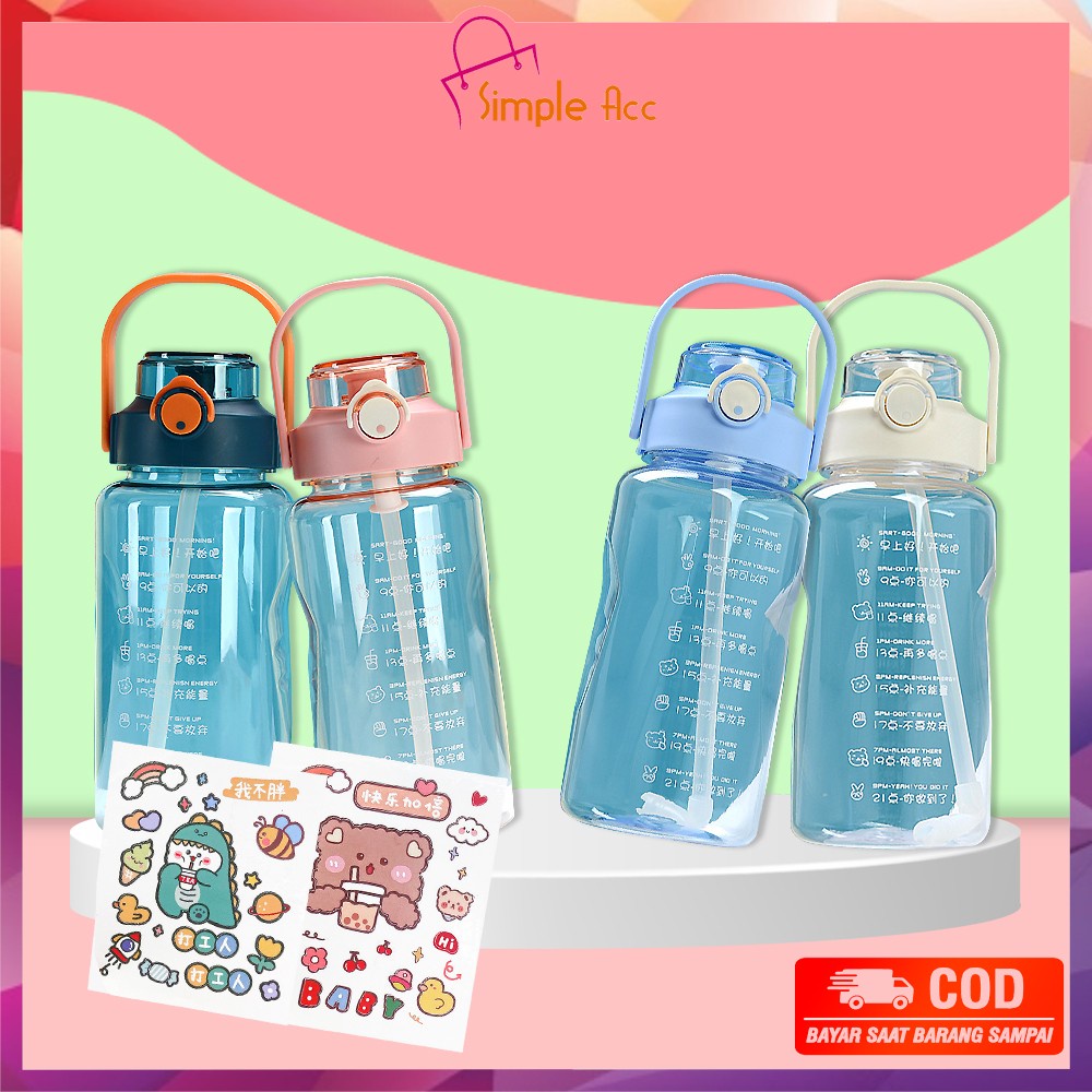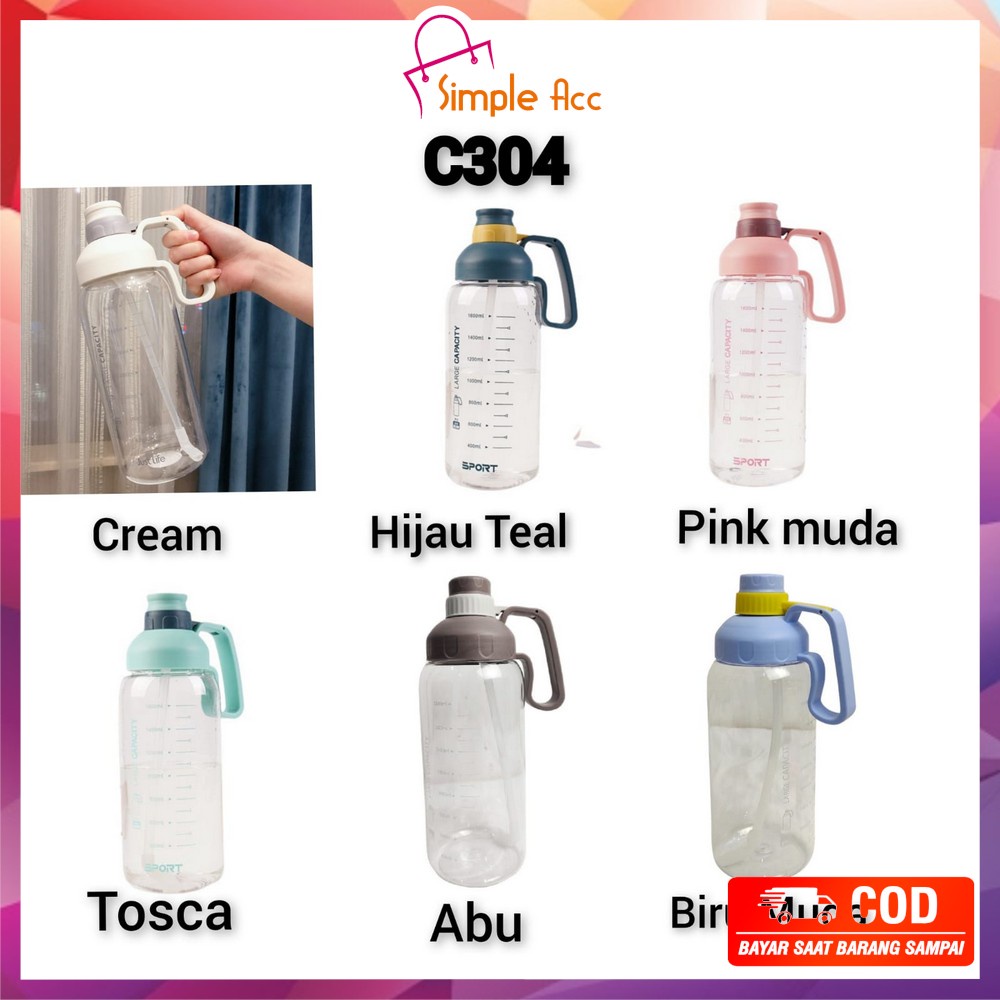 DO-C304 C305 Botol Minum Motivasi 2 Liter Food Grade / Botol Air Minum Jumbo 2000ml BPA FREE / Botol Minum Sedotan Dewasa