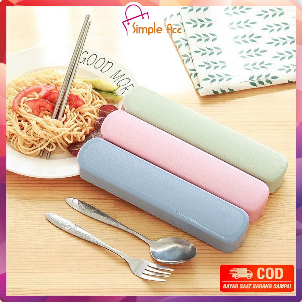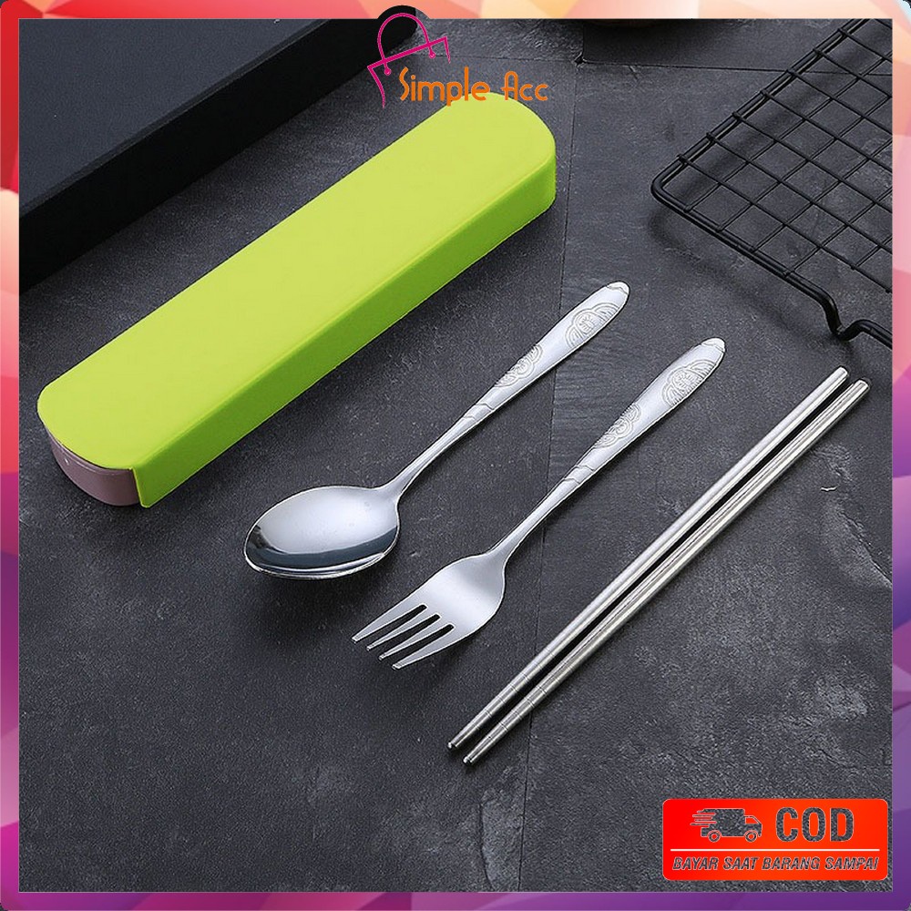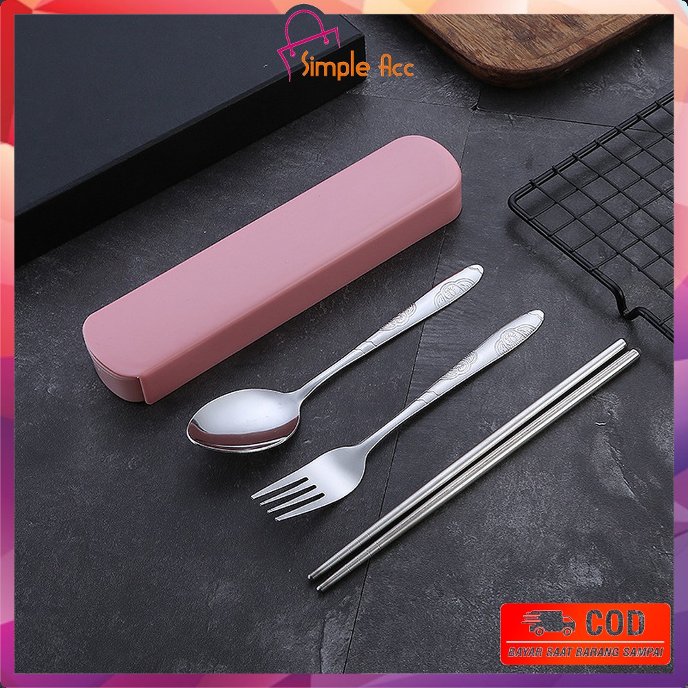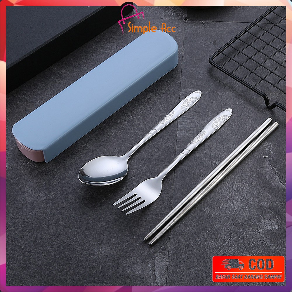 DO-C495 Sendok Set 3IN1 Stainless Steel / Alat Makan Sendok Garpu Sumpit Set Portable Dengan Kotak Praktis