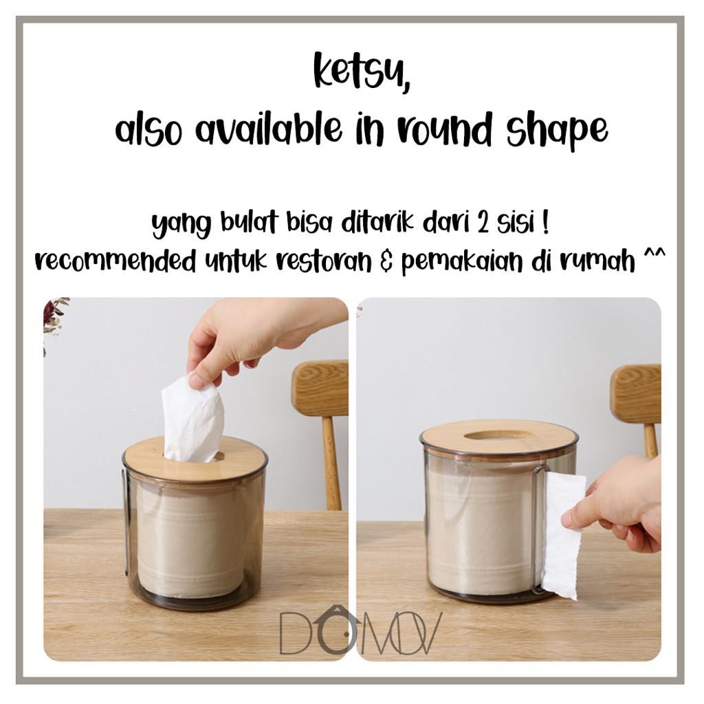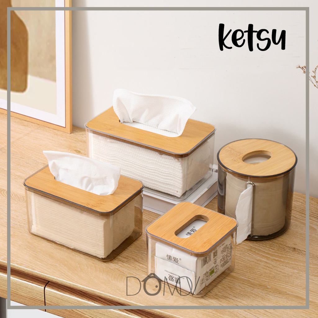 DOMOV KETSU Kotak Tisu Kayu Tissue Box Transparant Bening Plastik Akrilik Tutup Kayu Estetik