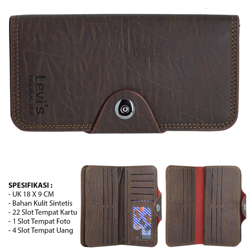 DOMPET PRIA model kancing Panjang dompet BRANDED DOMPET PANJANG Pria wanita TEBAL kuat dan lentur