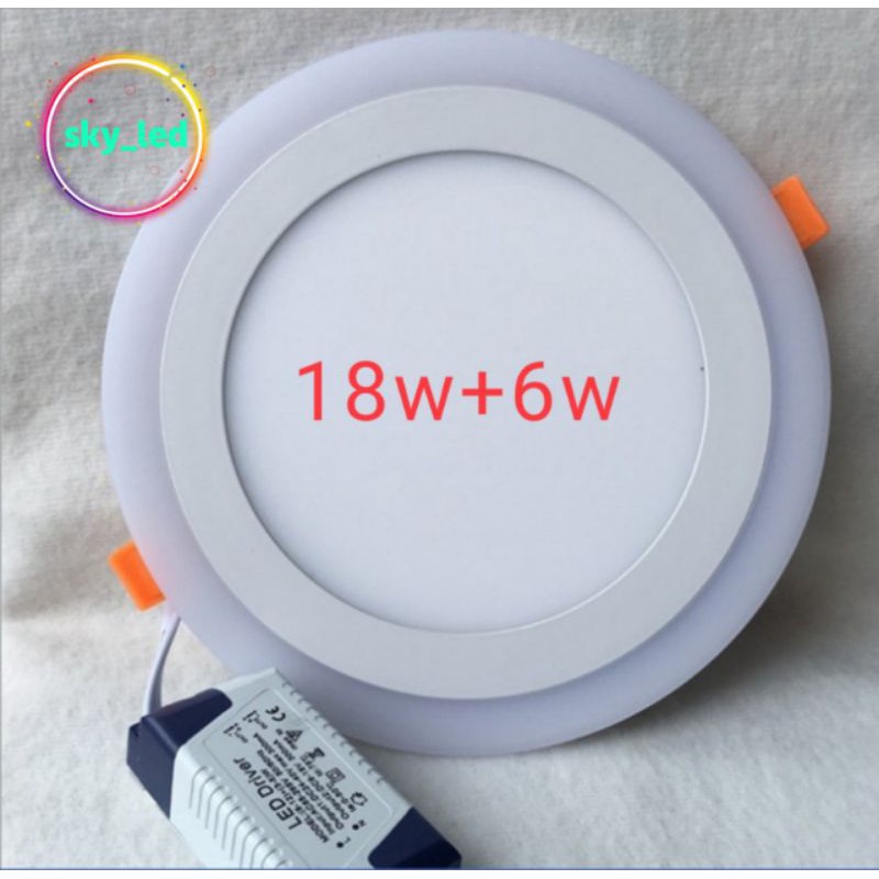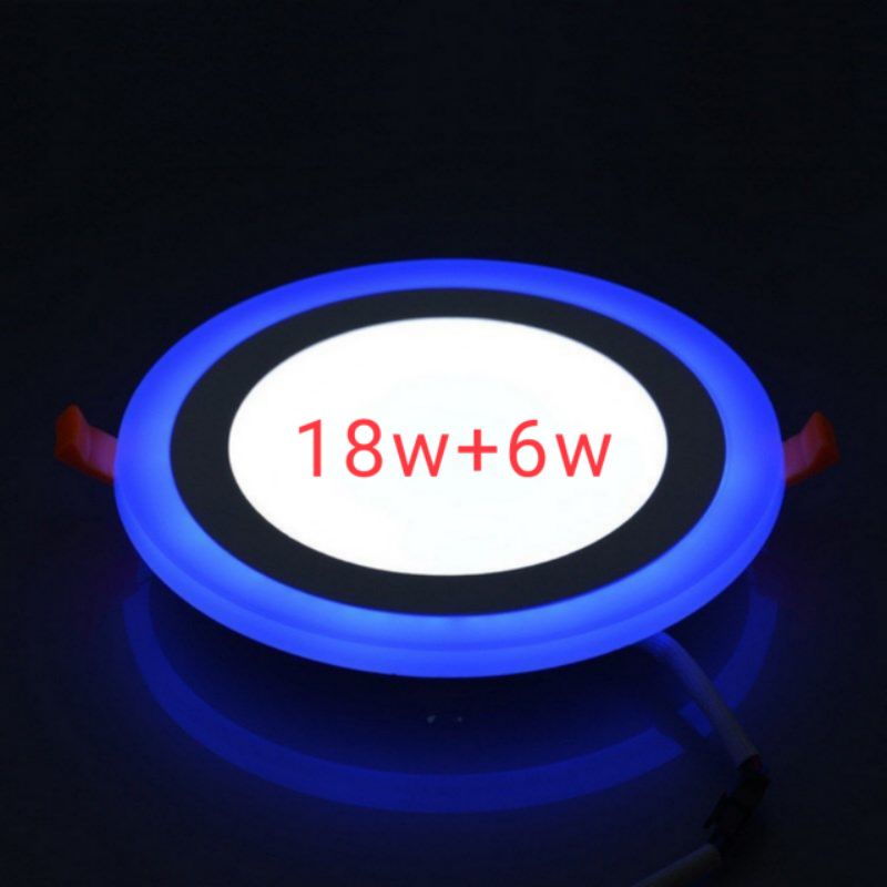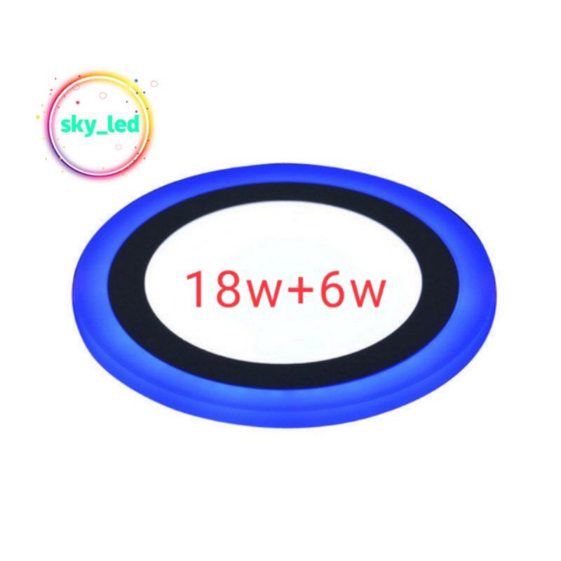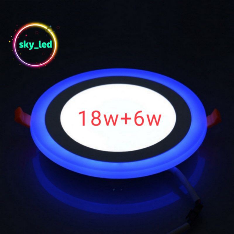 DOWNLIGHT LED PANEL 2 WARNA18w+6w WATT BULAT TENGAH PUTIH SAMPING BIRU KUNING PINK JUGA ADA