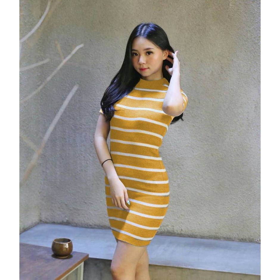 DRES RAJUT WANITA CASUAL / RAJUT DRESS PRES BODY/ STRIPE NATHANIA DRES PREMIUM/DRESS FRESH BODY
