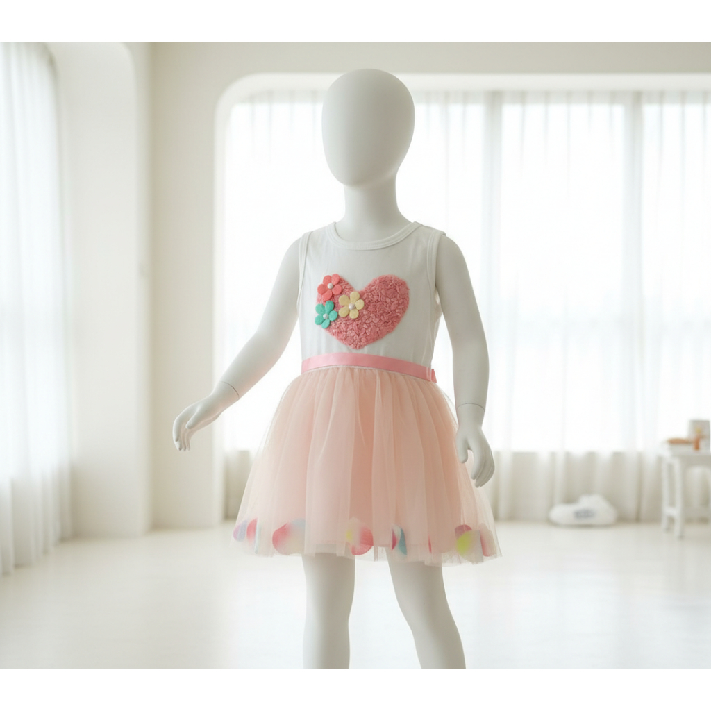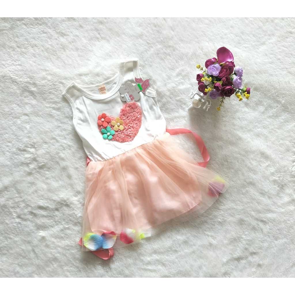 D1907002 - DRESS ANAK HEART LOVE PASTEL TUTU BUNGA