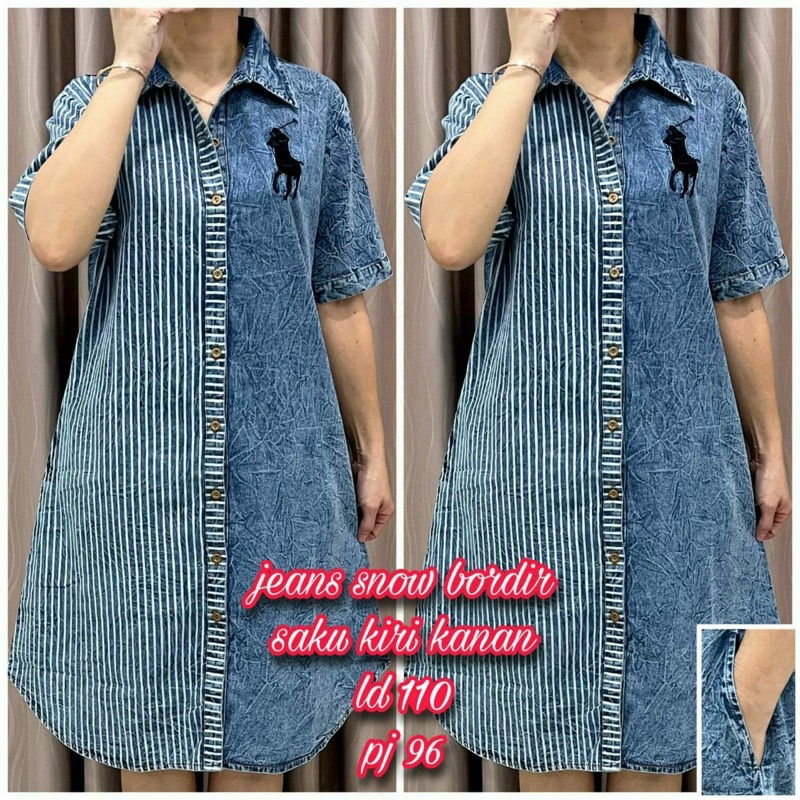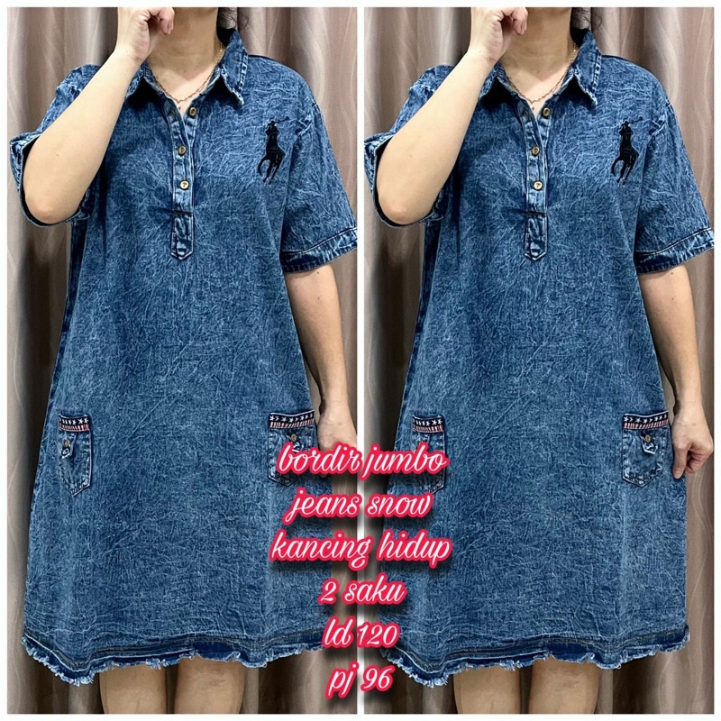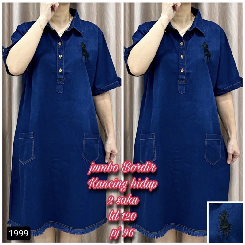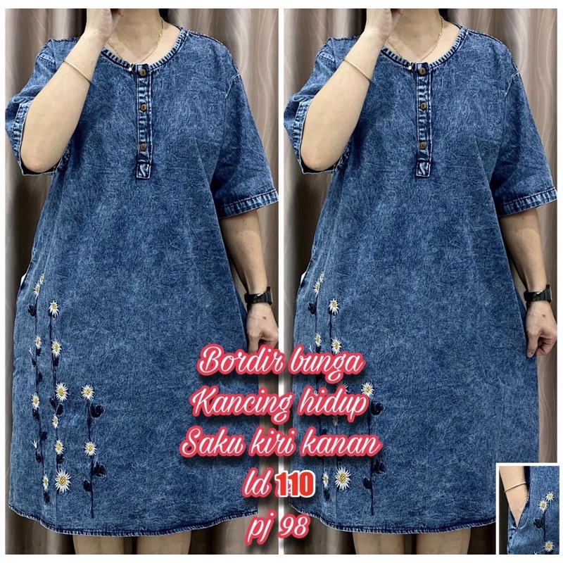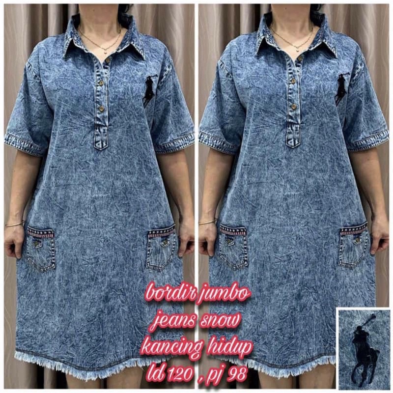 DRESS JEANS BASIC BAHAN DENIM /JEANS BORDIR JUMBO(KETERANGAN LD ADA DI FOTO)