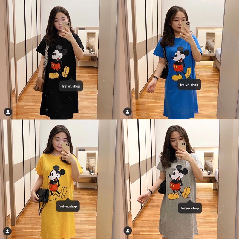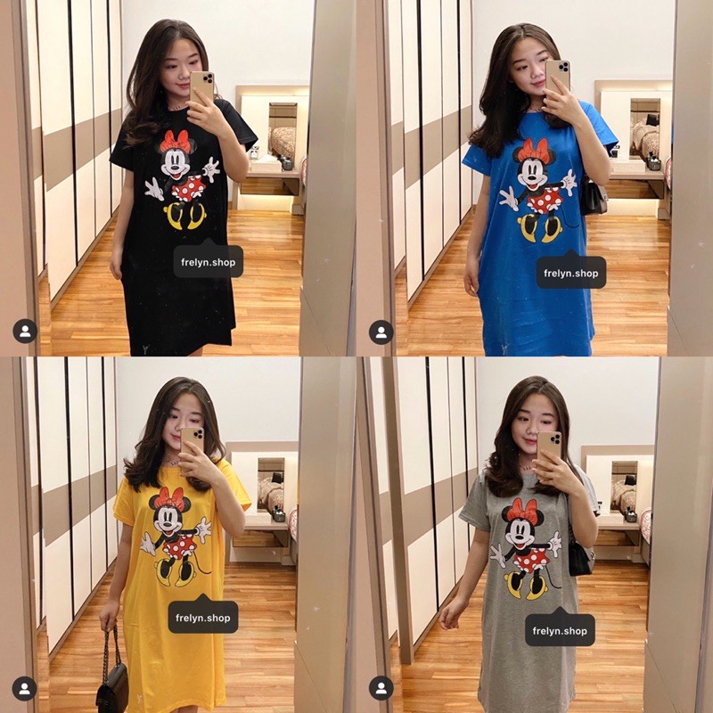 DRESS KATUN DISNEY HITAM / ABU / KUNING / BIRU | BAJU DRESS LUCU CUTE KARTUN BERSHKA