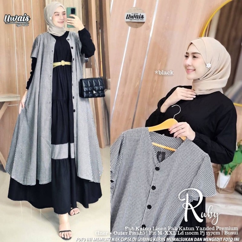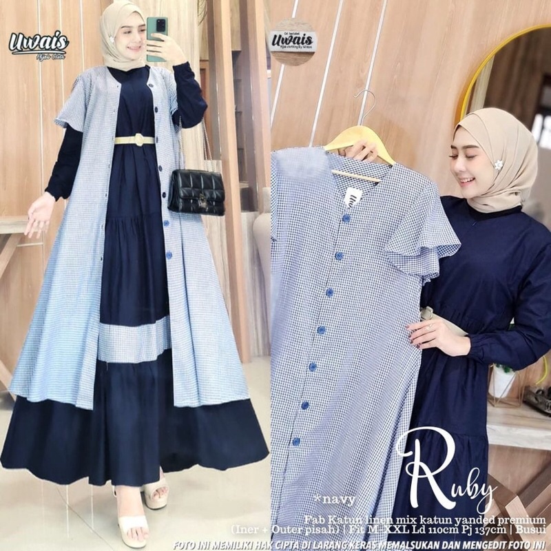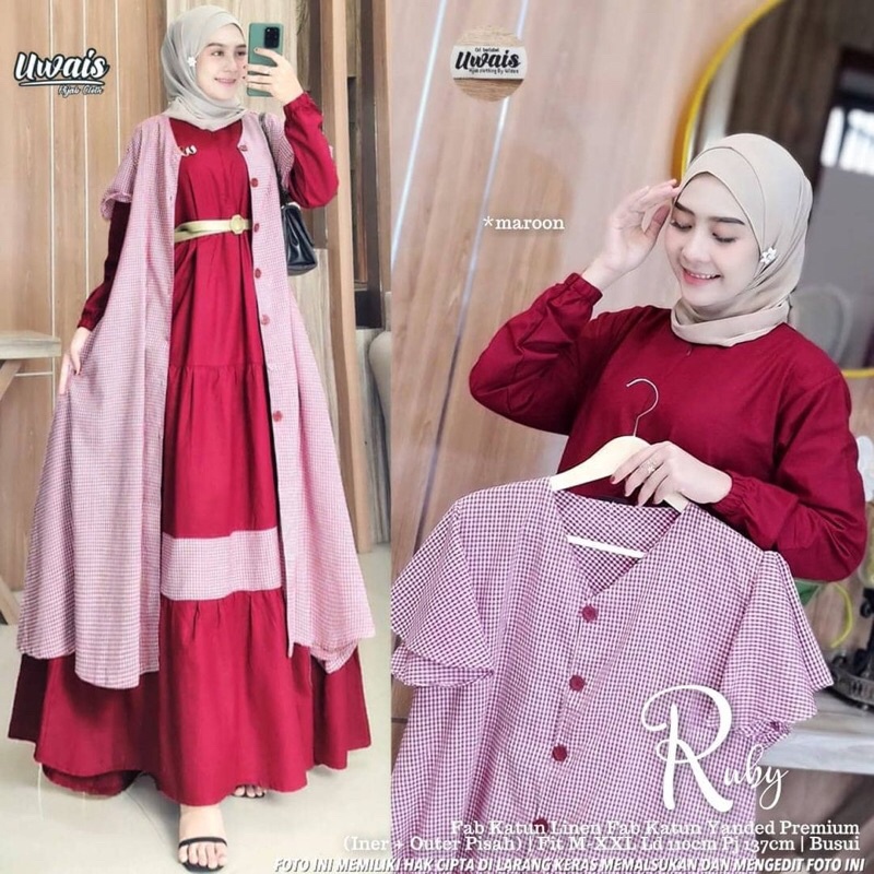 DRESS MUSLIM, Fashion Muslim, baju wanita, dress, gamis, Baju gamis, fashion wanita, Ruby One Set ( Dress + Outer) bahan katun rayon
