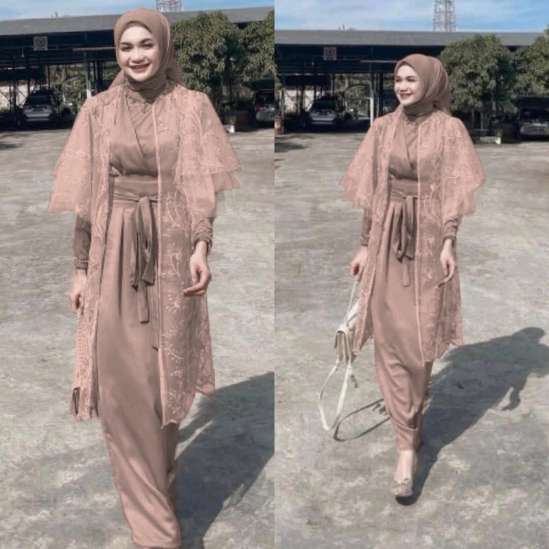 DRESS PESTA KIMONO SET GAMIS POLOS DENGAN OUTER BRUKAT GAMIS PESTA KONDANGAN GAUN BRIDESMAID