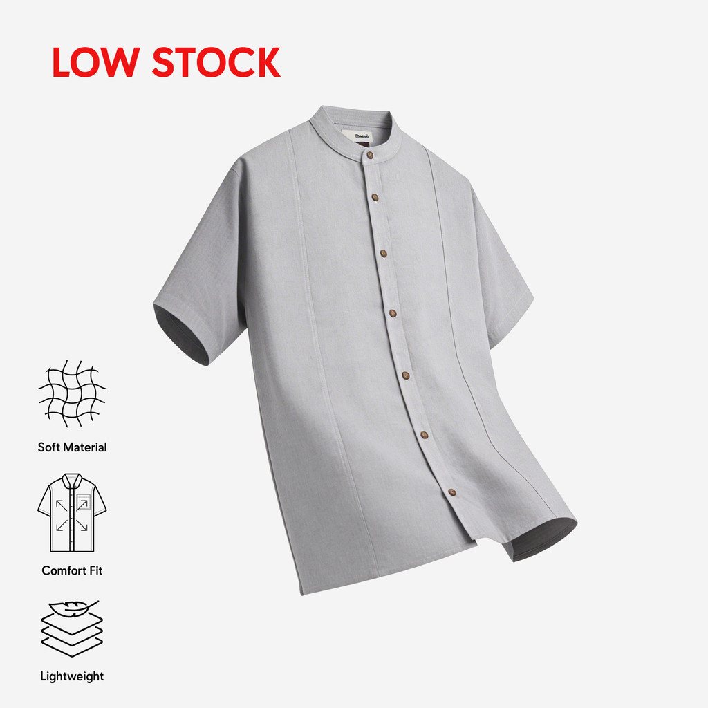 DUHA Baju Koko Flannel Lengan Pendek - Light Grey - Ghaba