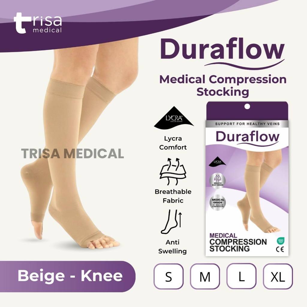 DURAFLOW - Varicose Stocking Knee Beige Open