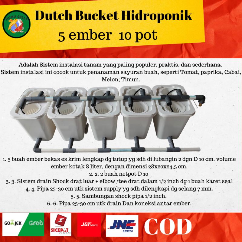 DUTCH BUCKET HIDROPONIK SET 5 EMBER 10 POT TANAMAN HIDROPONIK
