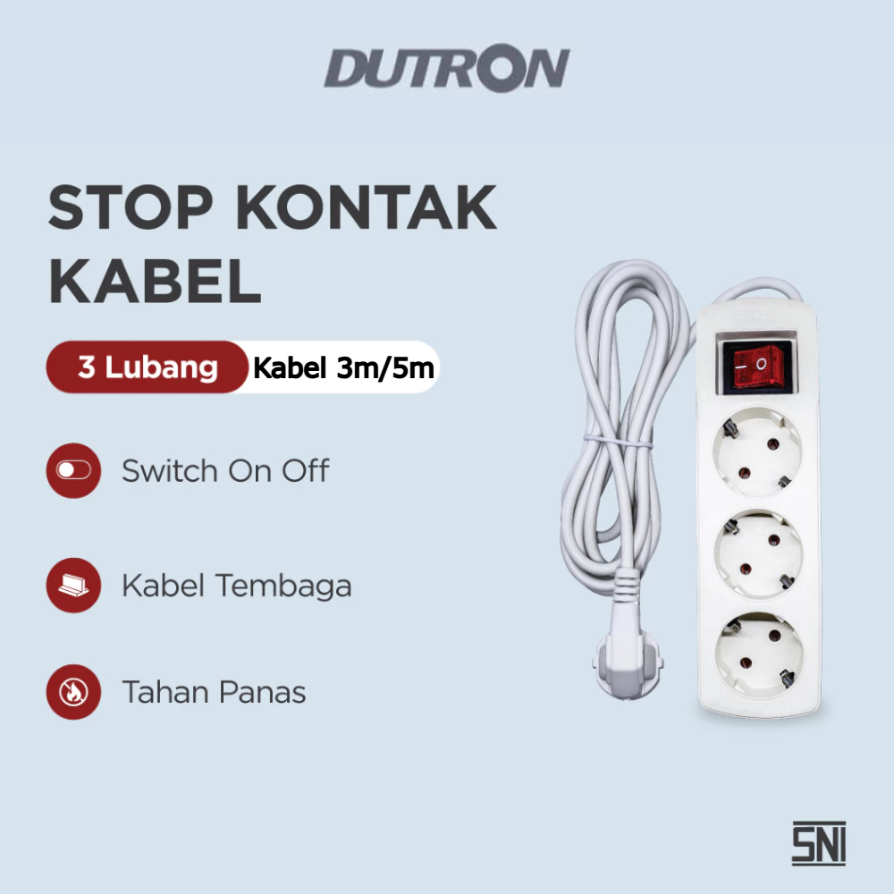 DUTRON Stop Kontak Kabel Switch ON/OFF SNI 3 Lubang Colokan 4 Lubang Colokan 5 Lubang Colokan dengan Steker / Kabel Colokan 3 meter & 5 meter Warna Putih / Hitam