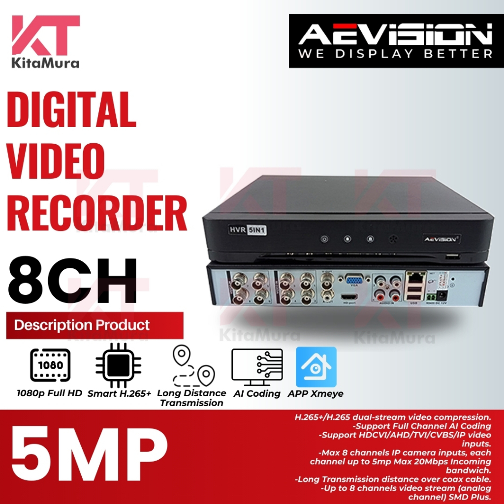 DVR Aevision 8CH 5MP Resolusi 2560P Full HD, HS-BH3008VH XMEYE 5MP
