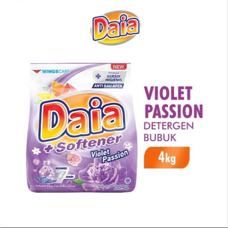 Daia softener detergent bubuk ungu atau biru 4 kg - violet passion - clean fresh hijab