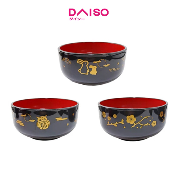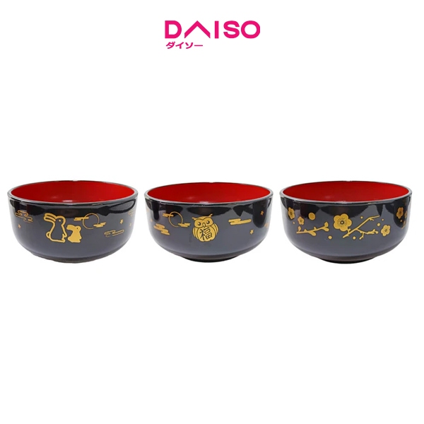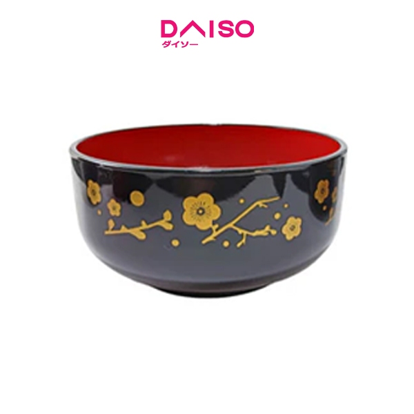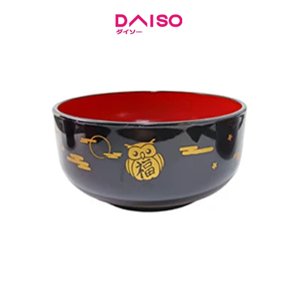 Daiso Aizunuri Middle bowl Japanese pattern Black inside red -Dishwasher Safe-