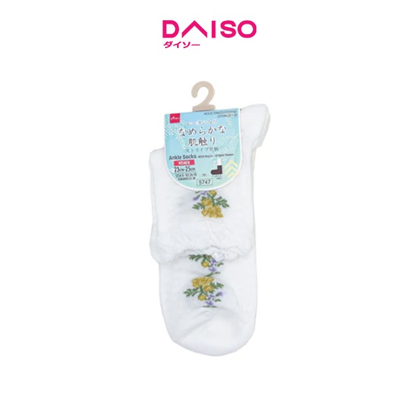Daiso Ankle Socks -With Rayon - Striped Flower-