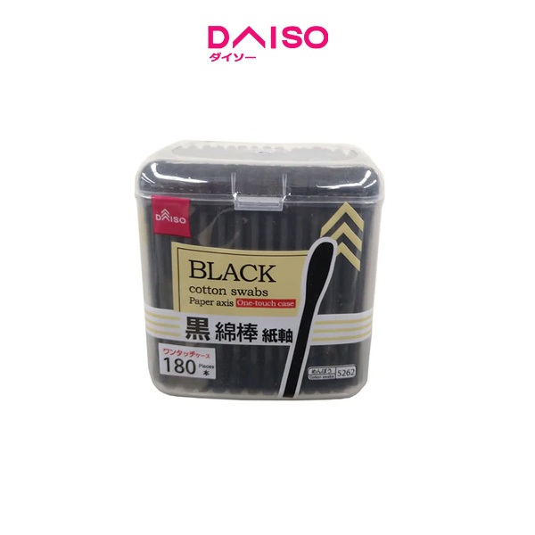Daiso Black cotton swabs Paper axis 180 pieces one-touch case