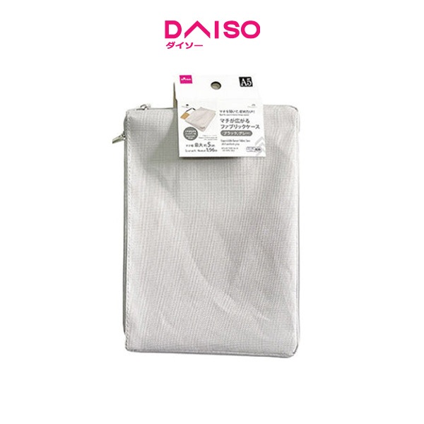 Daiso Expandable Gusset Fabric Case -A5 Size-black-grey-