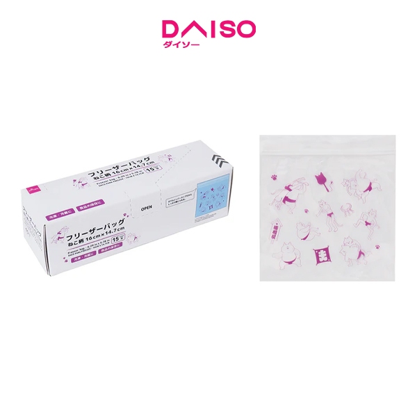 Daiso Freezer bag - 6.29 in x 5.78 in Cat pattern 15 pieces -