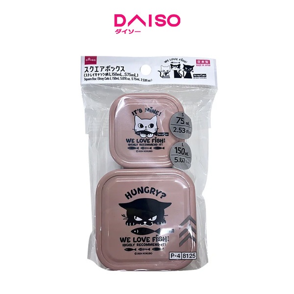 Daiso Square Box (Stray Cats L 150mL 5.07fl oz S 75mL 2.53fl oz )