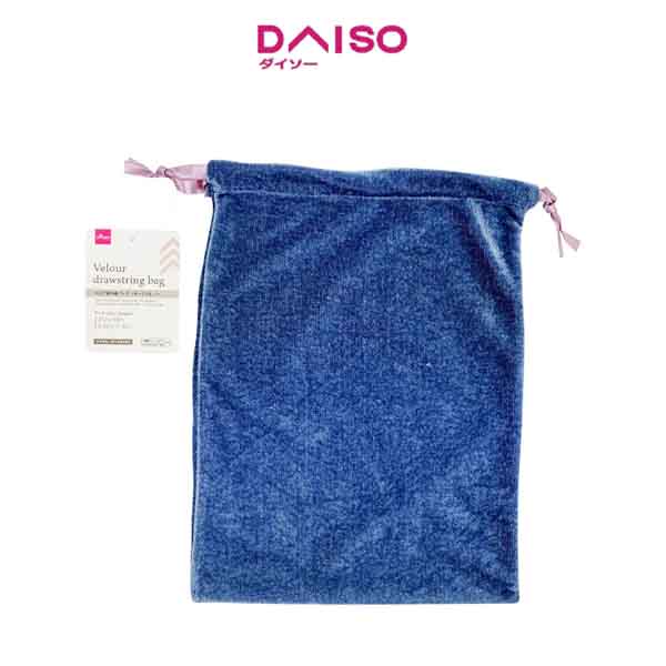 Daiso Velour Drawstring Bag-Simple text -Dark Gray-