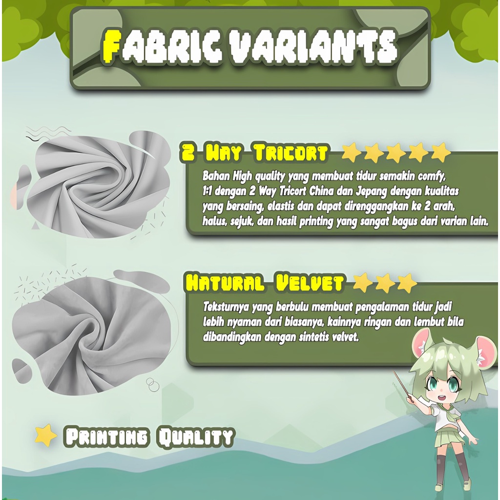 Dakimakura Custom 2 Sisi Anime Character, Bantal Anime Variasi, Tersedia 4 Ukuran dan Jenis Kain.