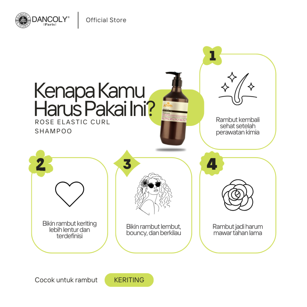 Dancoly Rose Elastic Curl Shampoo For Curly Hair / Rambut Keriting | Shampoo Rose Elastic untuk Rambut Keriting Natural | Perawatan Rambut setelah Dikeriting