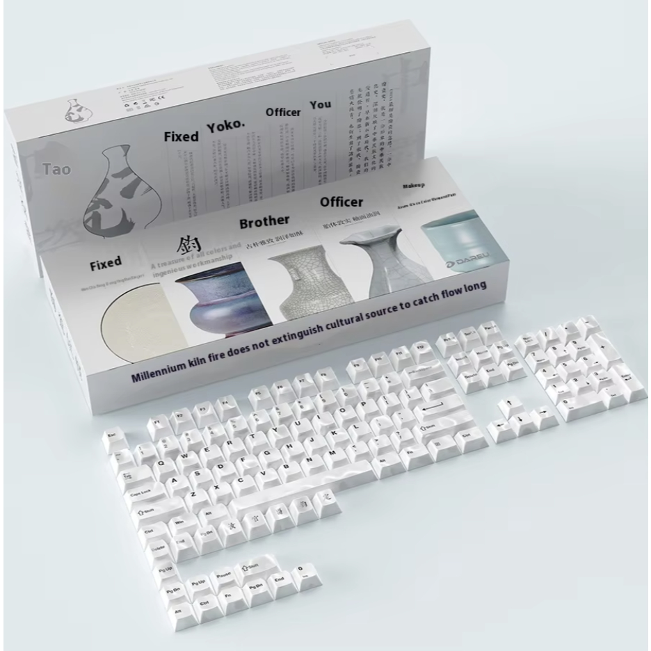Dareu Black on White Ceramic Cherry Profile Keycaps Set for Mechanical Keyboard
