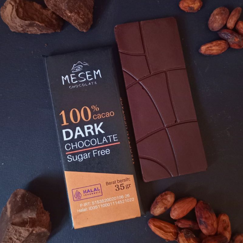MESEM Dark Chocolate 100% Cacao 35 gram | Coklat Hitam Murni 100% Kakao Tanpa Gula | Sugar Free 100% Cacao