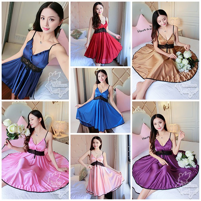 Baju Tidur Satin Sexy Sleepwear – Daster Wanita Elegan Kekinian Adem Halus Import