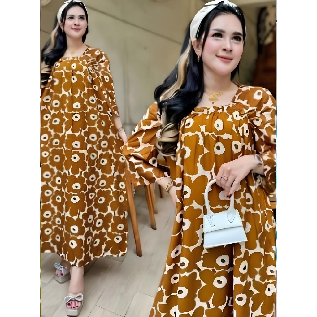 Daster Lengan Panjang Tangan 3/4 Daster Rayon Premium Adem Kerut Dada Motif Kekinian Batik Sablon Print Bunga Cantik Wanita Baju Tidur Remaja populer dress ibu bumil viral busui terbaru harga murah satuan grosir pakaian