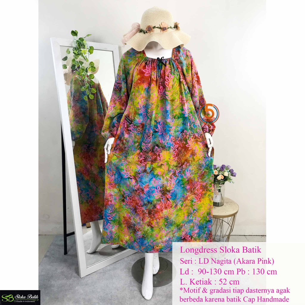 Daster Panjang Lengan Panjang Karet Dada Semata Kaki Jumbo Busui Bumil Manset Karet LD 90 100 110 120 130 Premium Batik Cap Tebal Longdress LD Nagita Slokabatik Kasalima