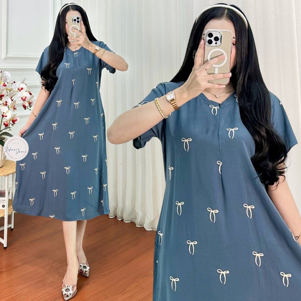 Dress Kimono Rayon Busui | Baju Tidur Wanita Daster Kekinian Kancing Depan