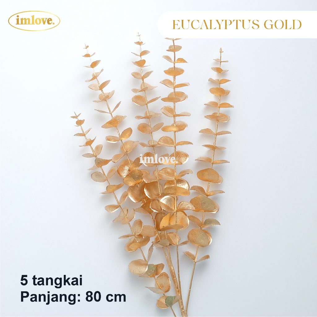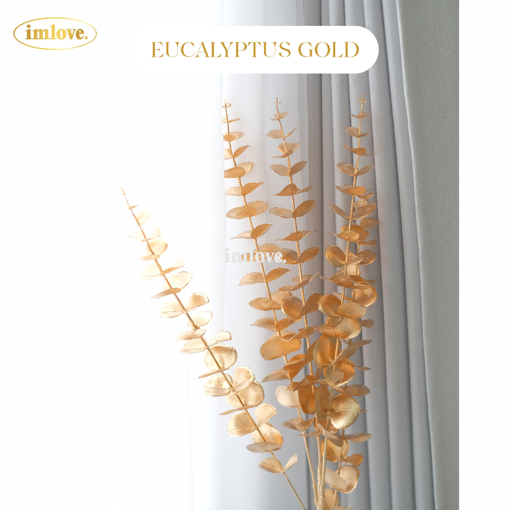 Daun Eucalyptus Emas 5 cabang Golden Eucalyptus Leaf Bunga Plastik Dekorasi Hampers Parcel