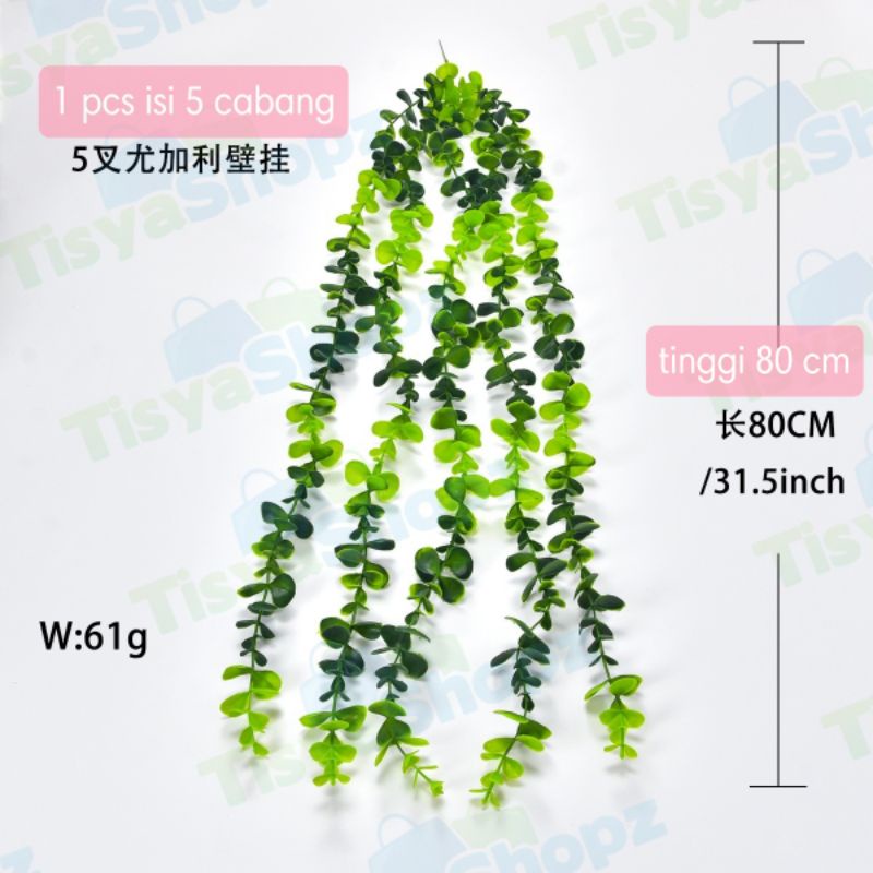 Daun Juntai Eucalyptus Dollar kombinasi 2 warna / Daun Dolar Juntai plastik ( TANPA POT )