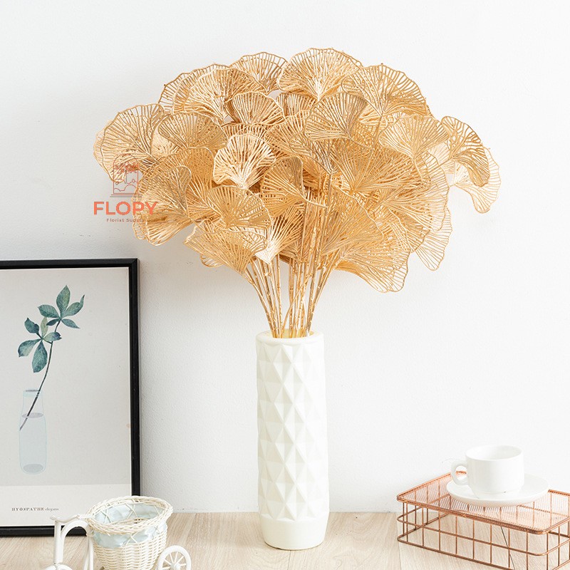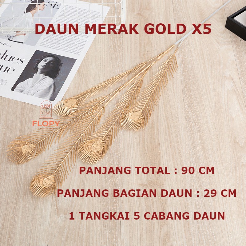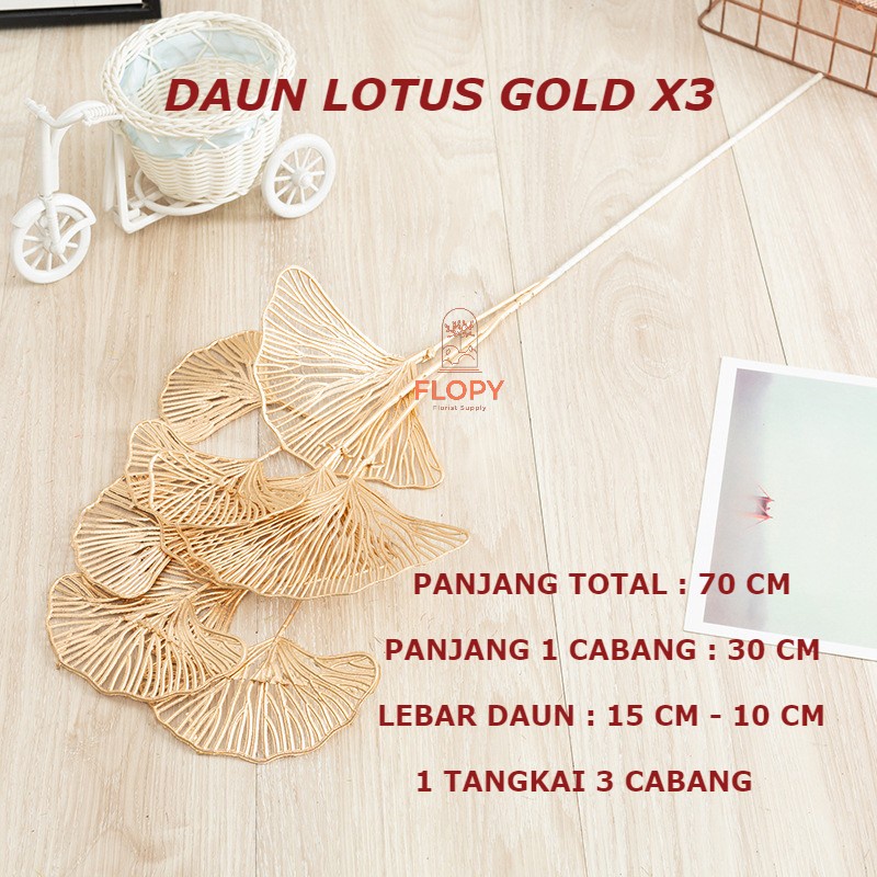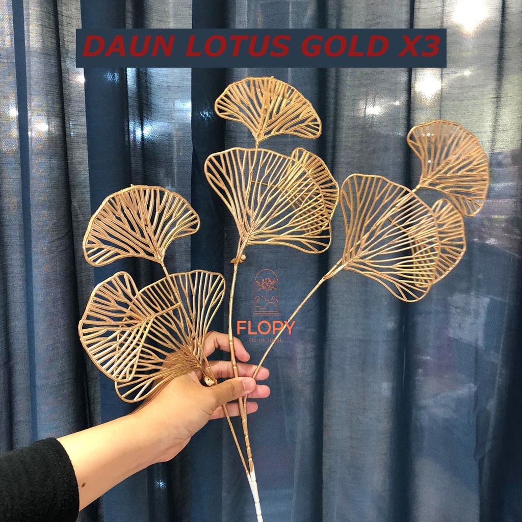 FLOPY Daun Lotus Gold X3 / Lotus Love / Daun Merak X5 / Daun Eukaliptus Gold X5 / Anggrek Gold / Krisan Jarum Gold / Mawar Berry Gold / Dekorasi Nikah atau Natal